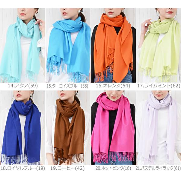 ベーシックに使えるパシュミナタッチで肌触りの良い、無地のストールです。無地のストールは使い道が豊富で、女性なら1枚は必ず持っていたいアイテムです。UVカット対策・冷房対策や、卒業式・入学式・結婚式等、セレモニーシーンなどにもマルチに活躍してくれます。薄手なのでアレンジ次第で、たくさんの巻き方が楽しめるからコーデの幅も広がります。