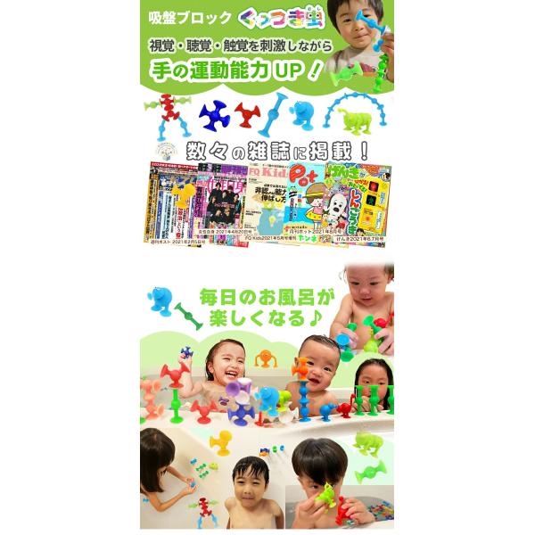 おもちゃ 知育玩具 お風呂 壁も使える 新感覚ブロック 吸盤 男の子 女の子 誕生日 プレゼント 子供 1歳 2歳 3歳 4歳 5歳 専門家推薦 スクイーズ 43pcsくっつき虫