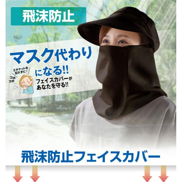 日よけ帽子 日焼け対策 ブラック フェイスカバー マスク ウイルス