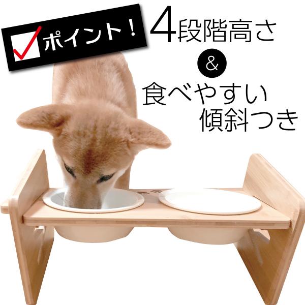 ペット食器台 フードボウル 食べやすい 肉球 陶器 高さ調節可能 4段階 ペット 犬 猫 食器 ネコボウル 天然竹 餌入れ 水入れ エサ皿 食器スタンド