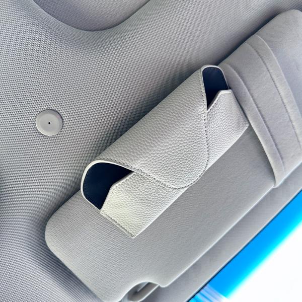 【用途】車内用メガネ・サングラスの収納、駐車券・ガソリンカードの保管 【特徴】 ・強力マグネット開閉:片手でスムーズに出し入れでき、運転の邪魔をしません。 ・サンバイザー装着:クリップで挟むだけの簡単設置。視界を遮らないコンパクト設計。 ・高品質レザー調素材:耐久性に優れ、手触りの良い質感。グレーカラーで内装を格上げ。 ・レンズ保護:内部は柔らかな素材で、大切なメガネの傷防止。 ・多機能:背面にカードホルダーを搭載し、小物の整理にも役立ちます。 【セット内容】ホルダー本体×1
