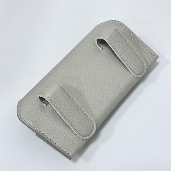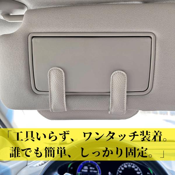 車 メガネホルダー マグネット式 サンバイザー サングラスホルダー 収納 ケース レザー調 磁石固定 カード収納 片手開閉 取り付け簡単 クリップレス グレー