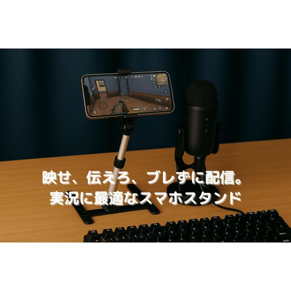 【用途】動画撮影(YouTube、TikTok)、料理・手元実況、オンライン会議、ライブ配信、自撮り 【特徴】 ・360度自由自在:ホルダー部分が回転し、縦横だけでなく真下(俯瞰)の撮影も可能。 ・高さ無段階調整:シーンに合わせて最適な高さで固定。目線の高さに合わせることでテレワークの映りも向上。 ・高い安定性:T字型の脚部がスマホをしっかり支え、撮影中のブレを軽減。 ・簡単設置:工具不要で組み立て・調整が可能。使わない時はコンパクトに収納できます。 ・幅広い対応機種:スプリング式のホルダーで、様々なサイズのスマートフォンをしっかりホールドします。 【スペック】 ・タイプ:T字型多機能スタンド ・調節機能:高さ調整、角度・回転調整可 ・素材:軽量合金・ABS樹脂 ・カラー:ブラック