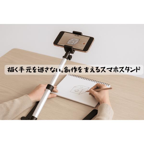スマホ三脚 スタンド 真上俯瞰撮影 高さ調整 角度自在 スマホホルダー 自撮り 料理 実況 ライブ配信 テレワーク 在宅 撮影スタンド iPhone Android 持ち運び