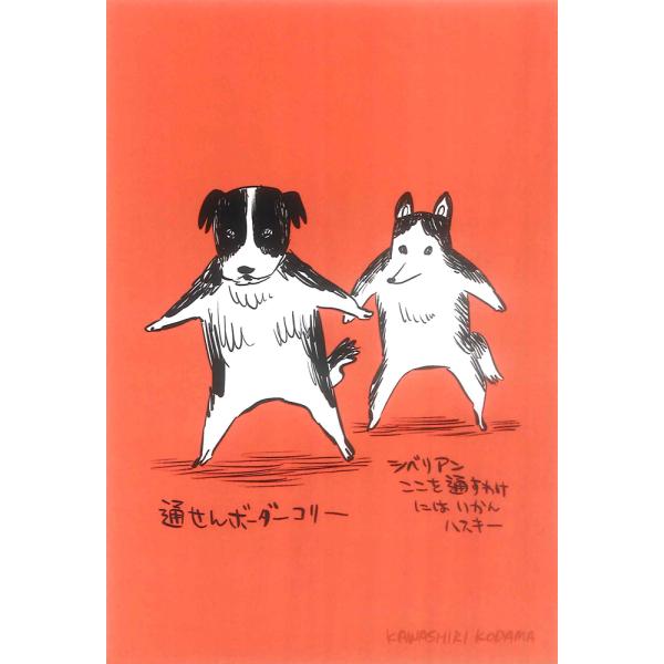 川尻こだまポストカード「通せんボーダーコリー」