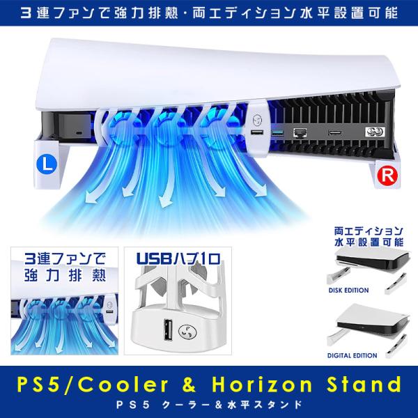 PS5 スタンド ディスクエディション デジタルエディション対応 PlayStation5 Cooler&Horizon Stand クーリングファン 充電 横置き 排熱 USB 静音