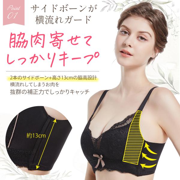ブラジャー 大きいサイズ 横流れ 脇高 ホールド 美胸 脇肉 着痩せ 補正下着 すっきり 小さく スマート スリム 産後 40代 50代 インナー 下着 爆買