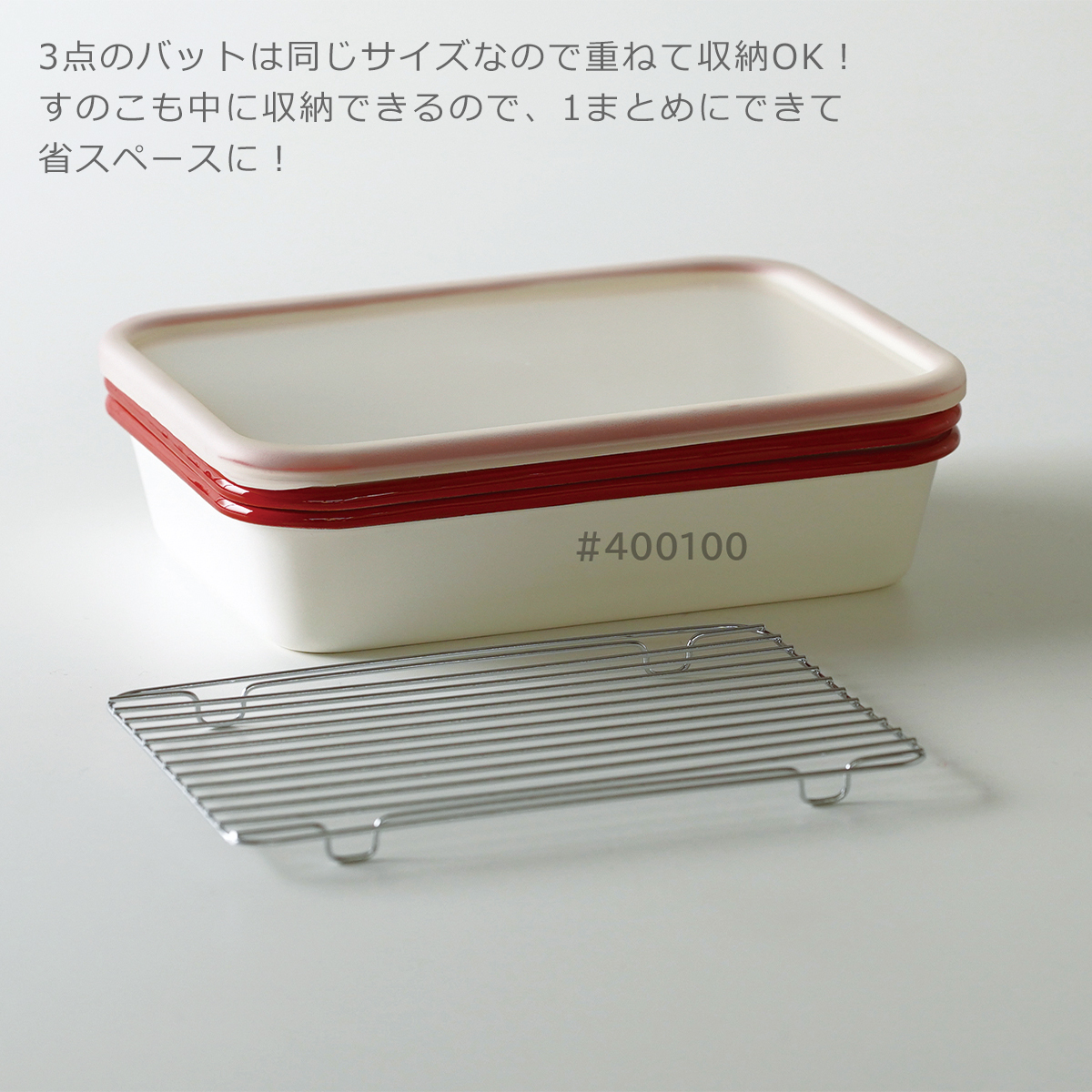 富士ホーロー 揚げ物バット 5点セット バット3点 すのこ網 フタ付き B-M-S (ビームス) ホーローバット BM-3V.NR ほうろう