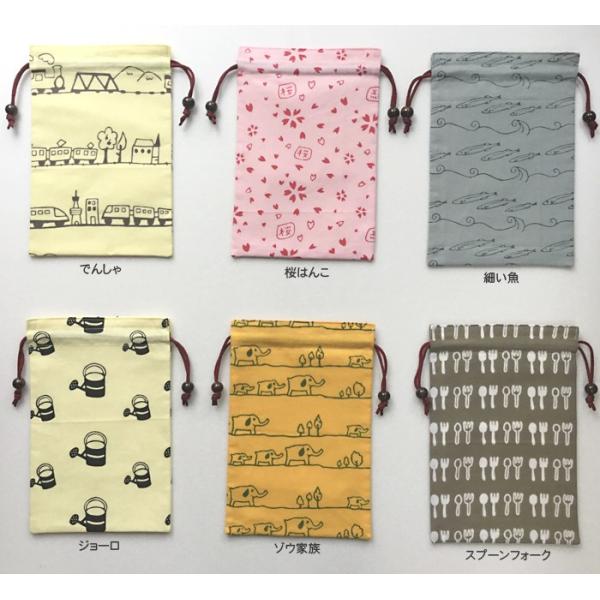 柄は、でんしゃ、ぶとう、はりねずみ、マトリョーシカ、ふたば など20柄になります。