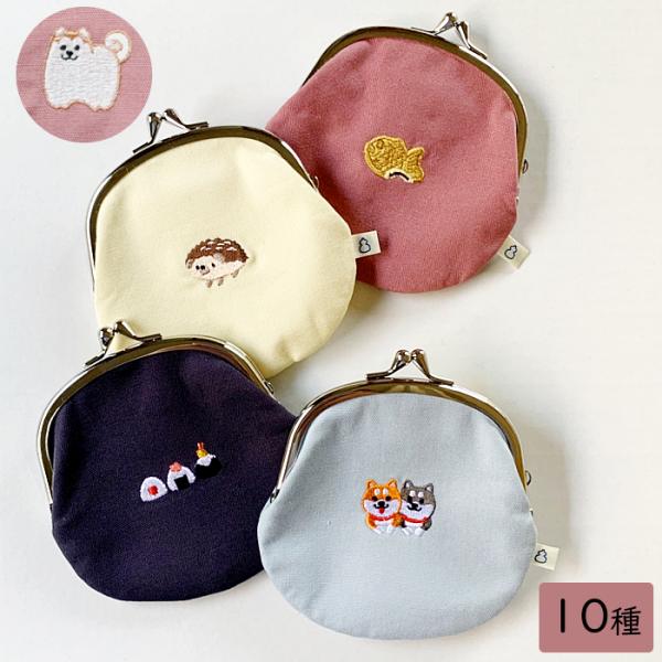 がま口 財布 小銭入れ 日本製 かわいい はりねずみ 柴犬 おにぎり 鯛焼き 3.3寸 刺繍
