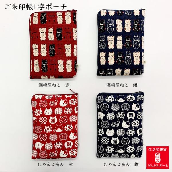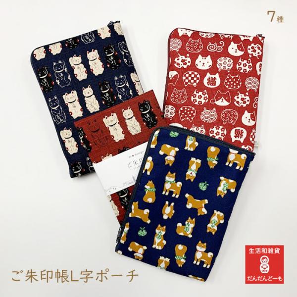 「ご朱印帳 L字ポーチ ねこ・いぬ」
