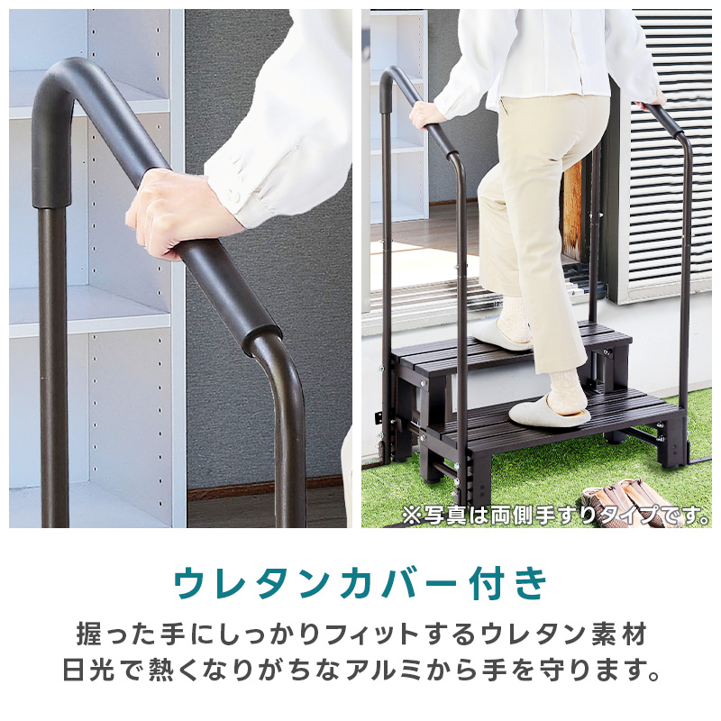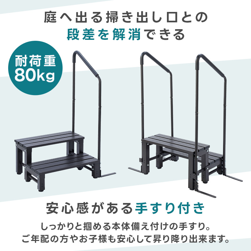 手すり付き段差ステップ 屋外 両手すり 片手すり 2段 アルミステップ 縁台 踏み台 階段 段差解消 安定性抜群 昇り降り お年寄り 転倒防止 補助 庭造り DIY