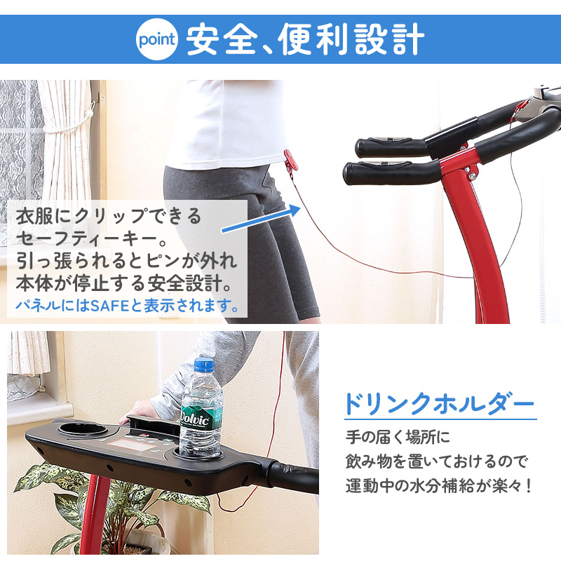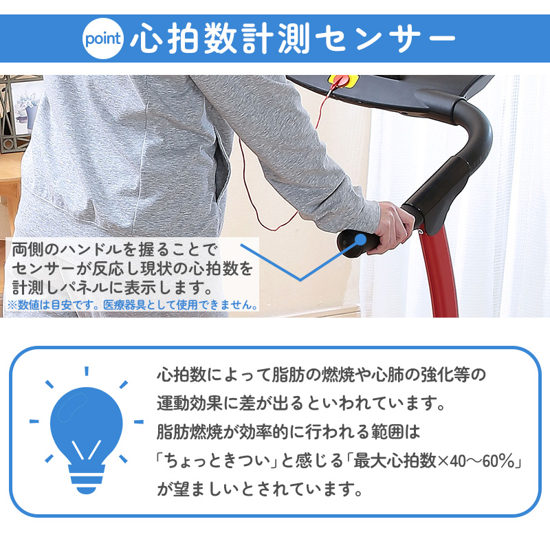 心拍数が計測できる手すり付き電動ルームランナー