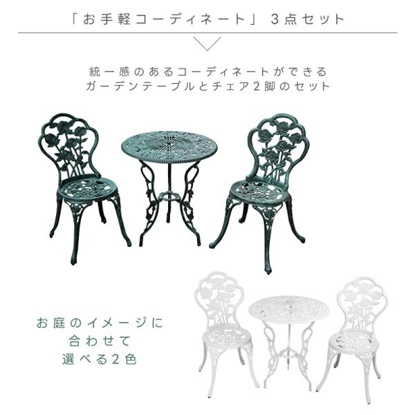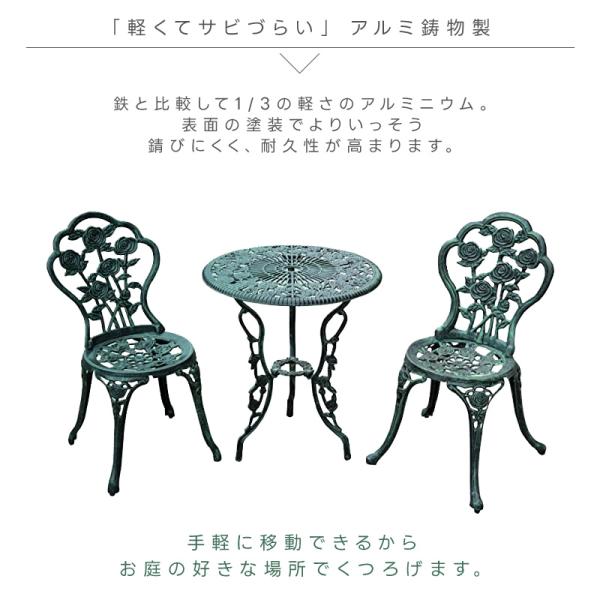 ガーデン テーブルセット アルミ 3点セット ガーデンチェア ガーデンテーブル 屋外 ベランダ バルコニー 北欧 英国風 ローズ バラ ガーデンファニチャー