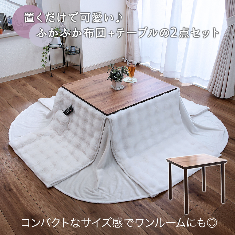 優しい肌ざわりのふかふか布団+こたつのお得な2点セット。どんなインテリアにも馴染みます♪