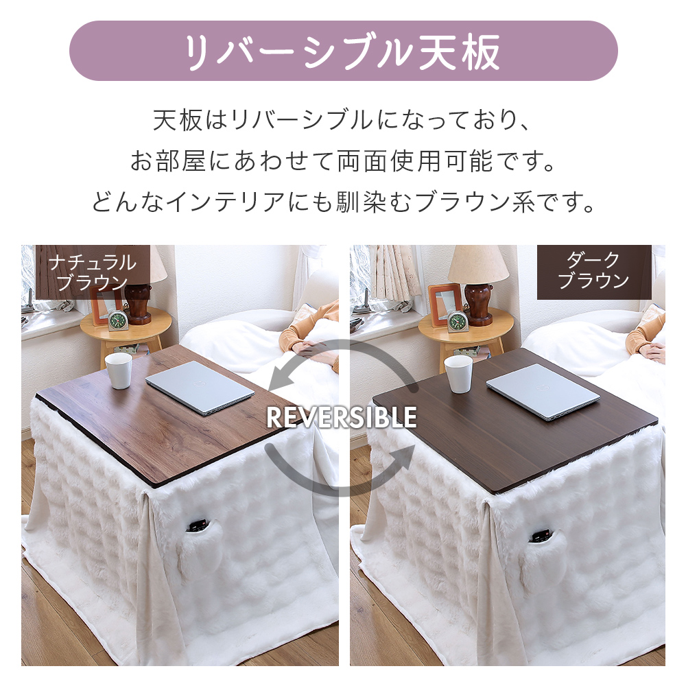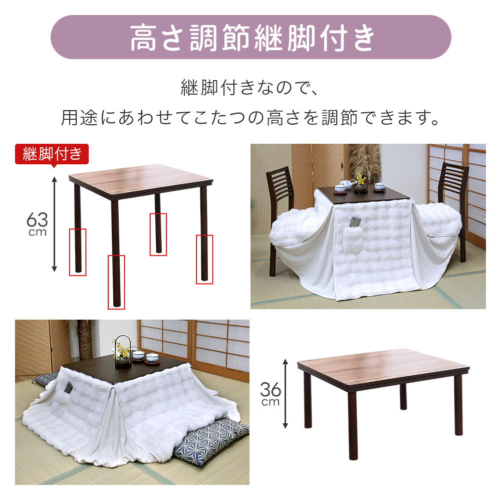 ふかふか生地のハイタイプこたつ2点セット こたつ 布団 セット テーブル 長方形 70×60cm 高さ調節36/63cm2段階 ハイタイプ 継脚式