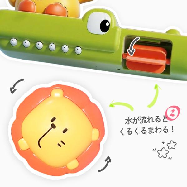 ・ライオンの顔に水が流れると、くるくるまわる!