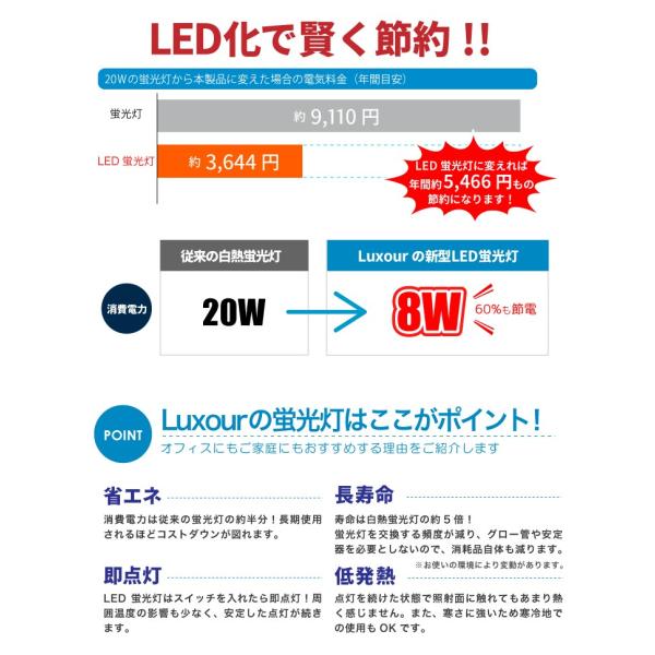 (LED蛍光灯 20W 直管LED蛍光灯 昼光色 58cm 580mm 蛍光灯 工事不要 節電 省エネ LED 蛍光灯 直管 直管蛍光灯 20W形 20型 20形 天井照明 オフィス 照明器具 まとめ買い 部屋 リビング 寝室 照明 人気 おすすめ 両側給電)