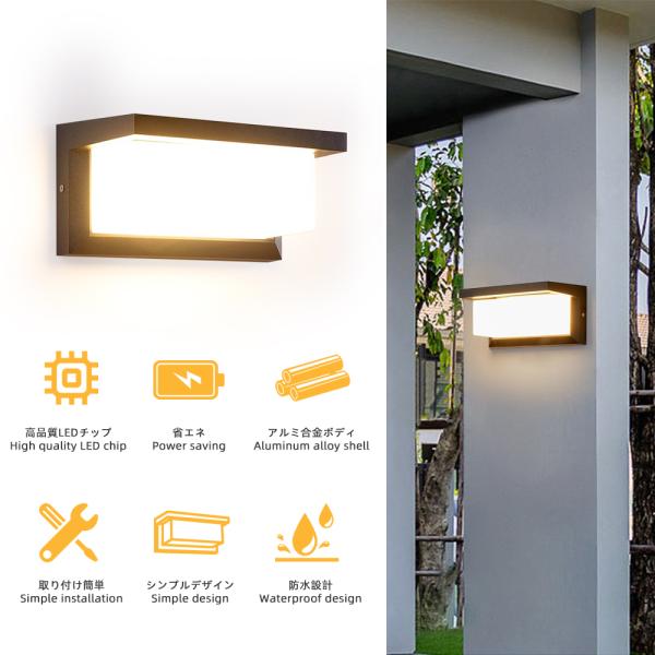 2個セット 玄関ライト LED 防雨 ブラケットライト 壁掛け 12W 電球色 外灯 ウォールライト 門柱灯 おしゃれ 壁付け 玄関照明 間接照明 器具 モダン かっこいい