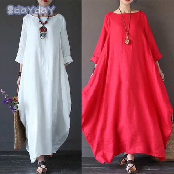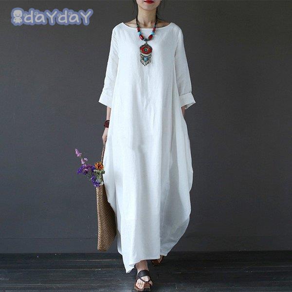 ロングワンピース レディース コットンリネン 春 夏 30代 40代