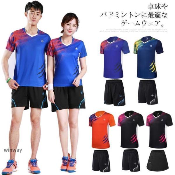 卓球ユニフォーム 上下セット 卓球 バドミントン ユニフォーム シャツ パンツ メンズ レディース 半袖 ゲームシャツ トップス 半ズボン 男性 女性