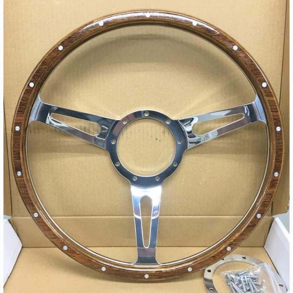 カスタム アルミ ビレット クラッシックウッド ステアリング ハンドル 9穴 38φ 15インチ バドニック モトリタ レカラ アメ車 旧車