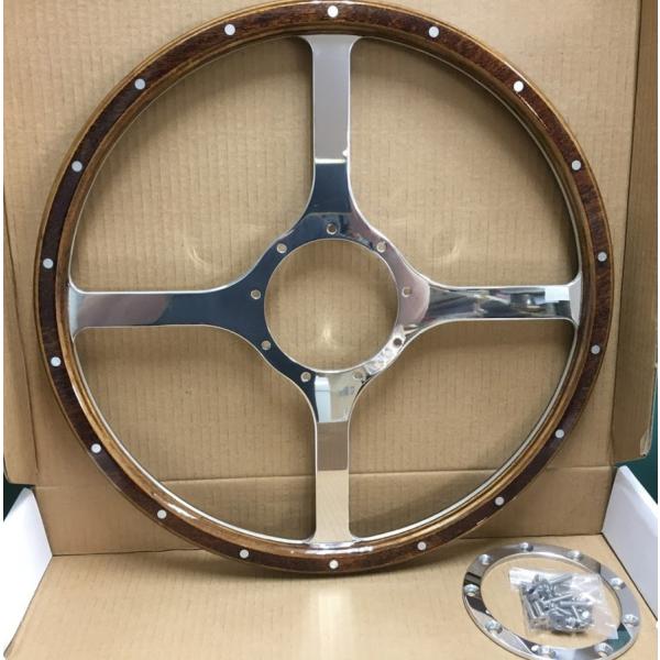 カスタム アルミ ビレット クラッシックウッド 十文字 十字 ステアリング ハンドル 9穴 38φ 15インチ モトリタ レカラ アメ車 旧車