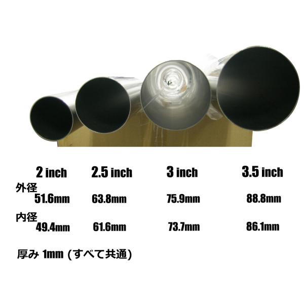 厚み1mm、直径2インチ(内径 約49.4mm、 外径 51.6mm)、長さ50cmです。