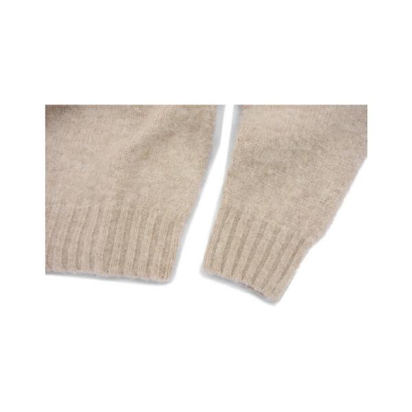 シャギーブラッシュとは通常のセーターを専用の道具でブラッシュし少し毛足の長い状態に加工したものとなります。ふんわりとした風合いと、軽さが特徴です。
