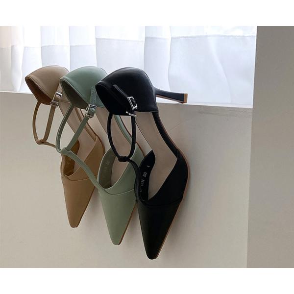 パンプス アンクルストラップ ポインテッドトゥ レディース ハイヒール 黒 ブラック ミント ベージュ 歩きやすい 痛くない カジュアル 靴 婦人靴 韓国