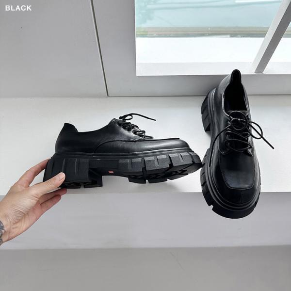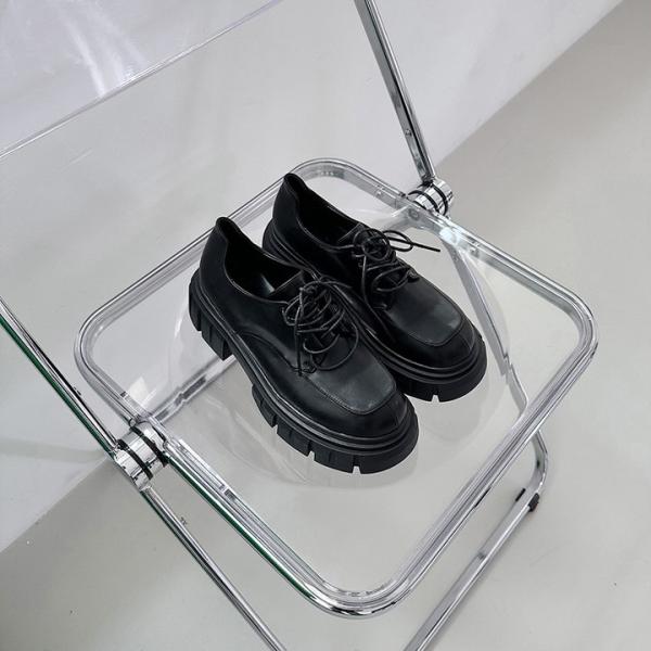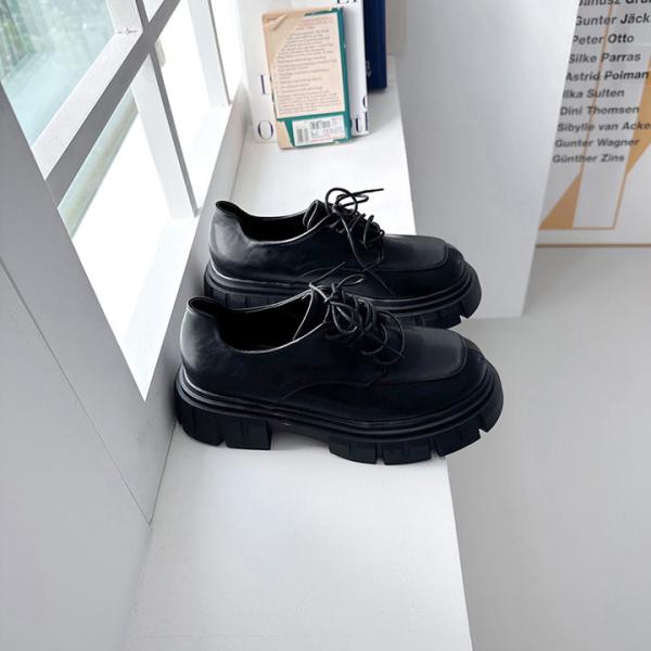 オックスフォードシューズ プラットフォームシューズ トラックソール レディース ミドルヒール 黒 ブラック おじ靴 革靴 ローファー 歩きやすい 靴 婦人靴 韓国