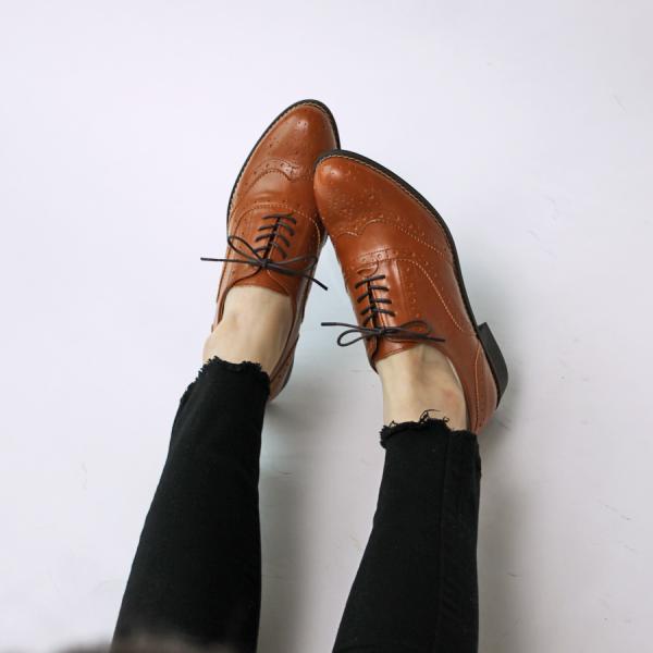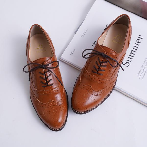 オックスフォードシューズ レディース おじ靴 メダリオン エナメル ウイングチップ レースアップ 黒 ブラック 茶色 ブラウン ローファー