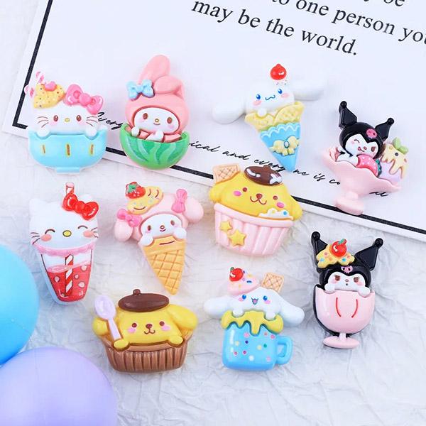 ネイルサイズのアイスクリームになっちゃった動物たち 5個セット☆プラスチック製貼り付けデコパーツ 猫 ねこ ネコ うさぎ 兎 ウサギ
