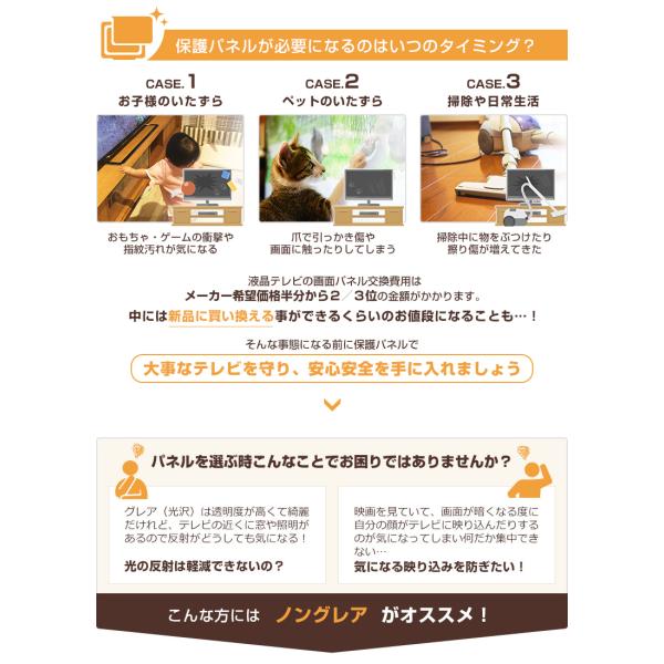 液晶テレビ保護パネルは、子供やペットのいたずらによる画面のひび割れ、傷、汚れを防止しテレビを守ります。