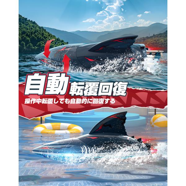 DEERC ラジコンボート ラジコン 船 おもちゃ 子供 大人向け 高速 35km/h ブラシレスモーター サメ造形 防水性 転覆回復 低電圧アラーム 制御距離120m 2104s
