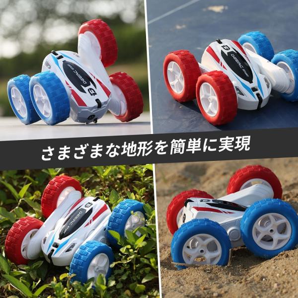ラジコン ラジコンカー オフロード 子供 DEERC 大人 室内 360度回転 両面走行 360°回転 四輪駆動 RCカー リモコンカー こどもの日 クリスマス プレゼント