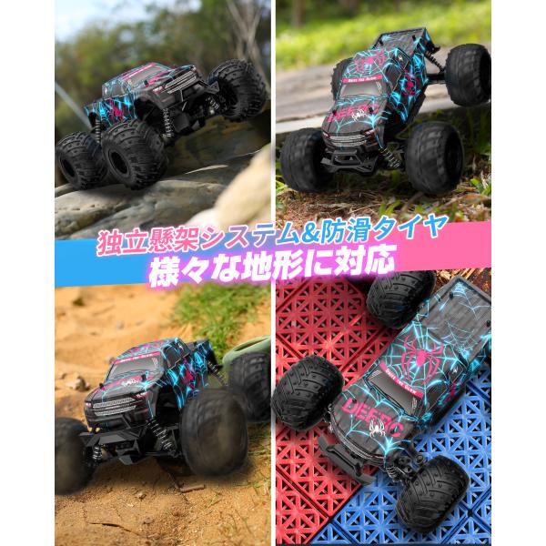 ラジコン ラジコンカー オフロード 子供 DEERC RCカー 防振 2.4GHz 操作時間80分 1/18スケール 屋外 室内 子供用 リモコンカー クリスマスプレゼント DE42