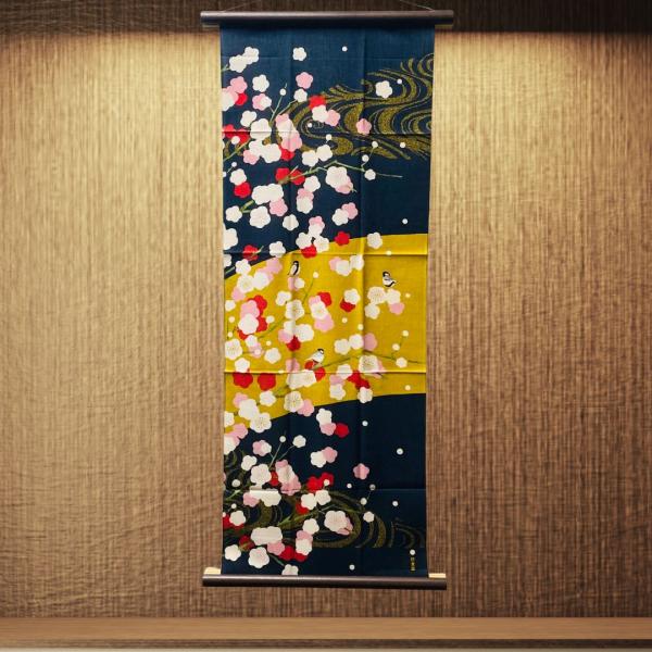 濱文様 絵手ぬぐい 紅白梅に四十雀 干支 お正月 冬 縁起 手拭い 2026年冬新柄 メール便対応