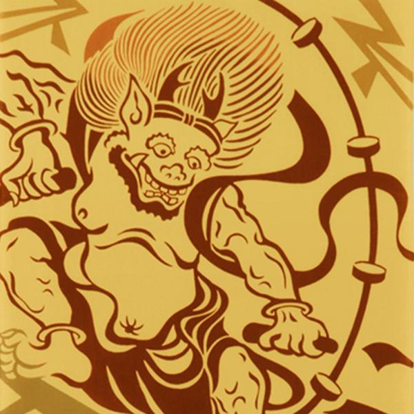太鼓を叩いて雷鳴と稲妻をおこす雷神。