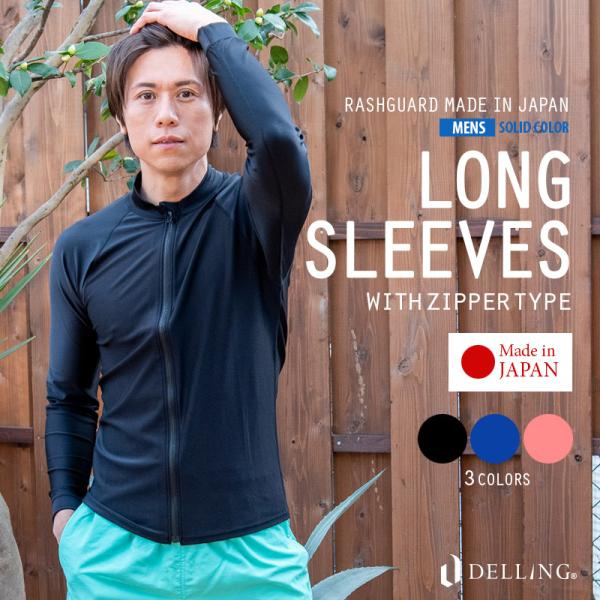 ラッシュガード メンズ 長袖 日本製 ファスナー付き ジップアップ シンプル 無地 ジップ付き ZIP UV対策 水着