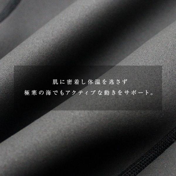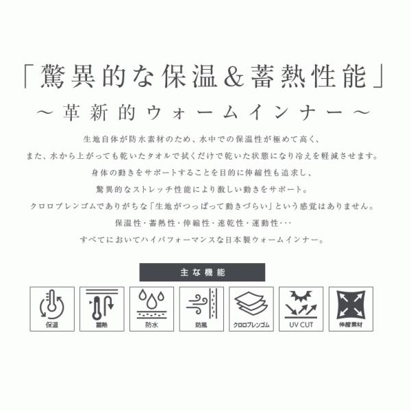 生地は水を通さないので、冷たい海水の中でも保温性抜群。また体温を外へ逃がさず保温蓄熱性を実現