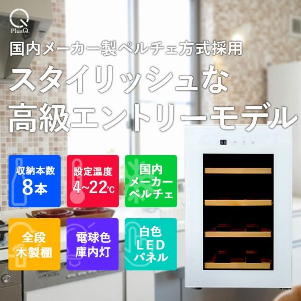 ワインセラー 家庭用 小型 8本 静音設計 木製棚 PlusQ プラスキュー BWC-008P(W) ホワイト