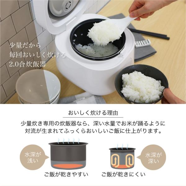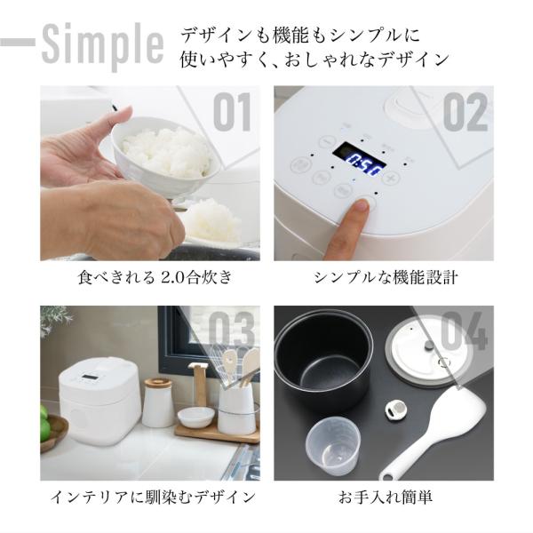 炊飯器 一人暮らし 1人暮らし 無洗米 2合 新生活 おしゃれ 早炊き フッ素内釜 保温 予約 玄米 二合炊き おしゃれ ホワイト MAXZEN RC-MX201 マクスゼン