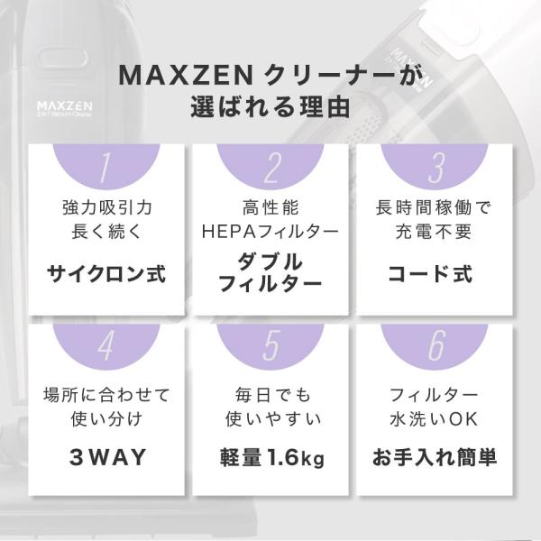 商品名: 3WAY充電不要コード式スティッククリーナー 自立式 パワフル吸引 ダブルフィルター 簡単操作 紙パック不要 水洗いOK スティック ブラック MAXZEN JC10SM01-BK