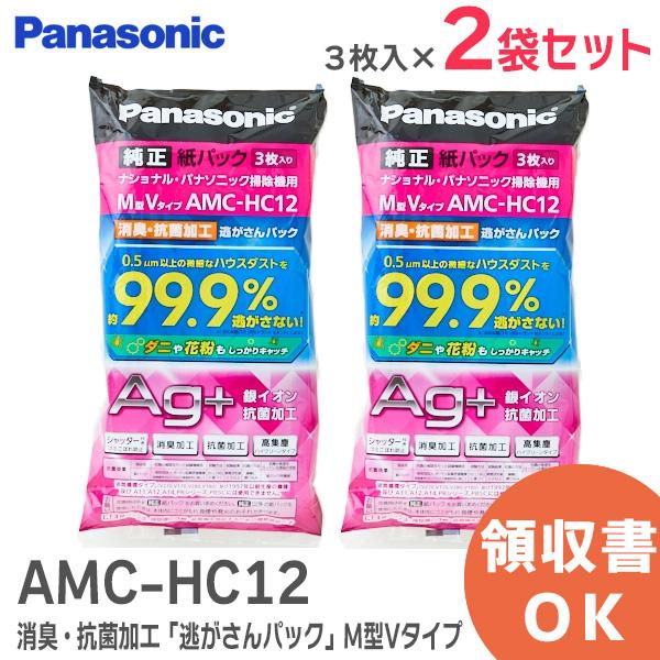在庫アリ 即納|AMC-HC12 パナソニック 2袋セット 純正品 掃除機用紙パック 消臭・抗菌加工 逃がさんパック M型Vタイプ AMCHC12