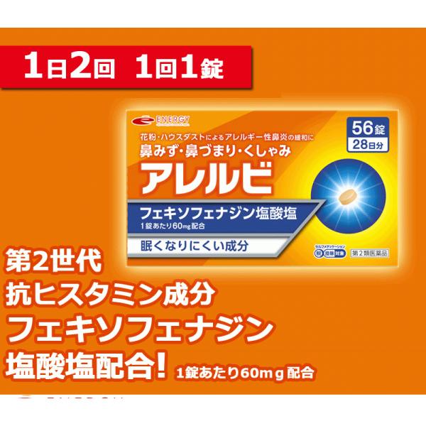 【第2類医薬品】【メール便・送料無料】 エナジーアレルギー鼻炎薬 (エナジーフェキソフェナジン鼻炎薬) 56錠 28日分 花粉症対策 アレルギー専用鼻炎薬 爆買