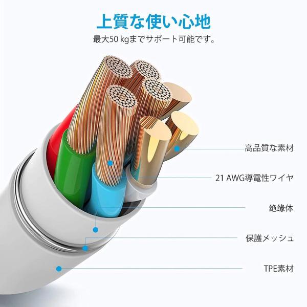 【革新的な耐久性】最も耐久性優れるPVCで作られて、数千回以上の折り曲げテストに合格しました。内部には耐磨耗性に優れた無酸素銅、アルミ箔などを組み込んで、耐久性が高くなります。さらに、アルミ合金製のコネクターも酸化?さび防止ができます。長年にわたり御愛用頂けます。