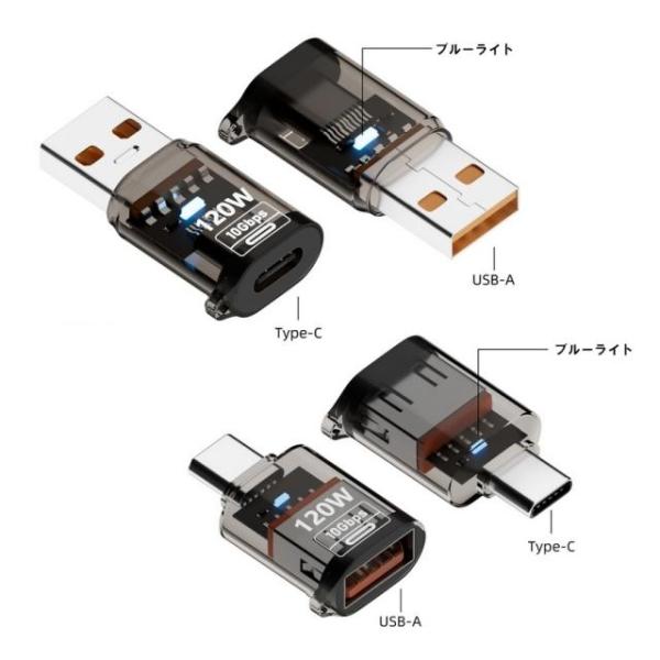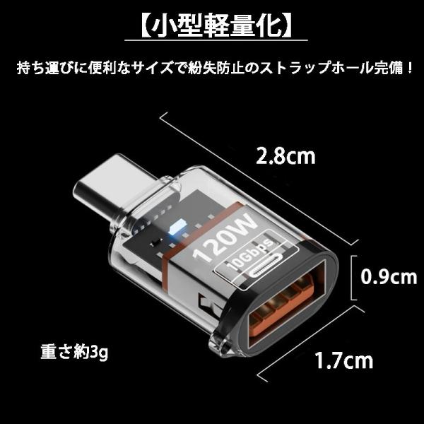 USB Type-C 変換アダプター 10Gbps 高速転送 120W急速充電 OTG対応 USB3.2 Gen2 TypeC to USB-A / USB-A to TypeC スマホ PC タブレット対応