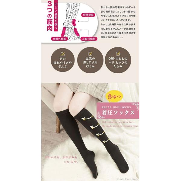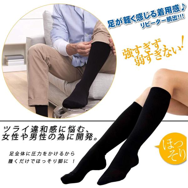 着圧ソックス レディース 3足組 寝る時 寝ながら 昼夜用 妊婦 ハイソックス 足のむくみ 浮腫み 産後 妊婦 マタニティ おやすみ 就寝 医療 ナース 加圧ソックス ふくらはぎ 加圧 黒 婦人 スリム 美脚 弾性ソックス 医療 23-25cm