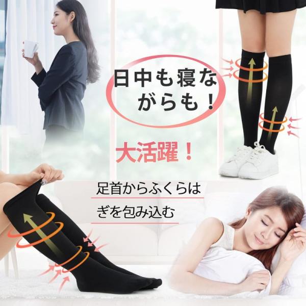 【レディース 着圧ハイソックス 3足セット】昼夜兼用 段階着圧 抗菌防臭 オフィス&寝ながら 美脚サポート